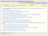 Рейтинг составлен на основе статистических данных, предоставляемых системой SpyLOG. Представлен общий рейтинг и рейтинг по темам (бизнес, досуг, интернет и т.д.).