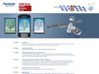 Сведения для покупателей сотовых телефонов о новинках и акциях фирмы Panasonic. Информация о сервисной поддержке (настройка электронной почты, мелодии, заставки для экрана и пр.). Форма регистрации.